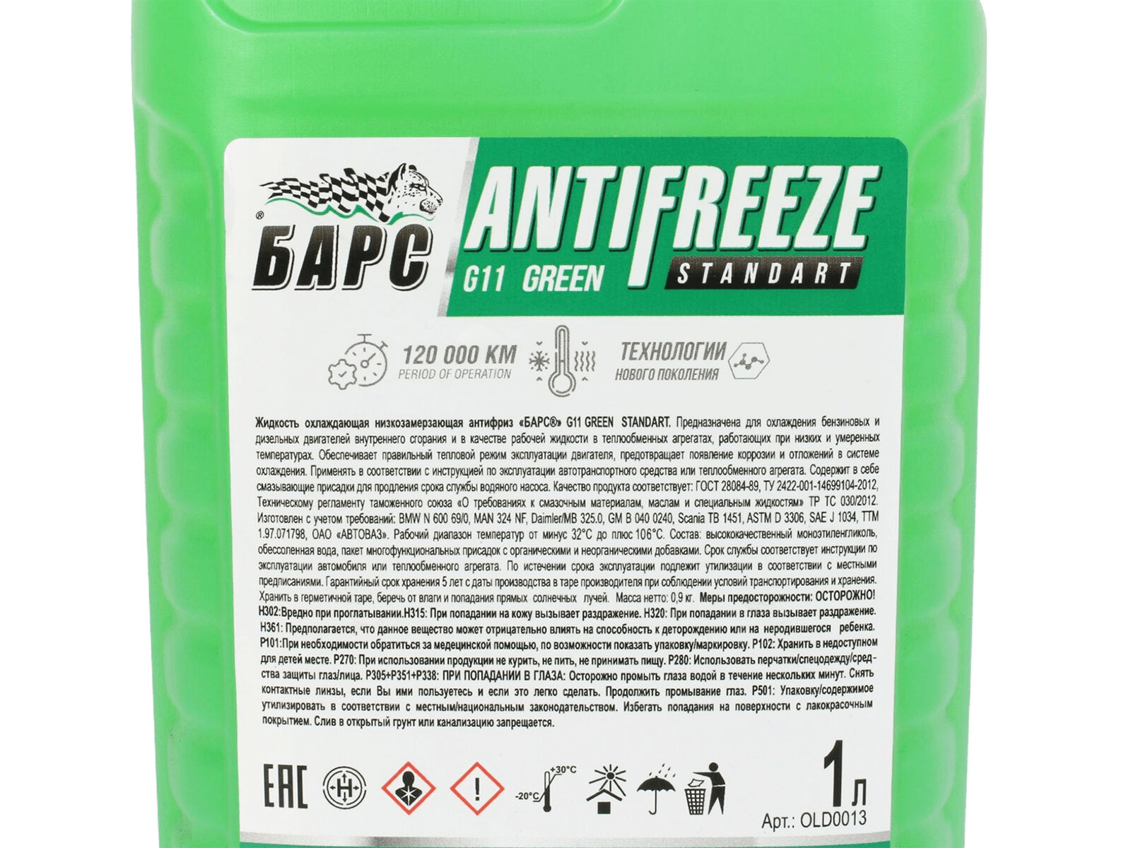 Антифриз барс Standart G11 зеленый 1кг интересное: