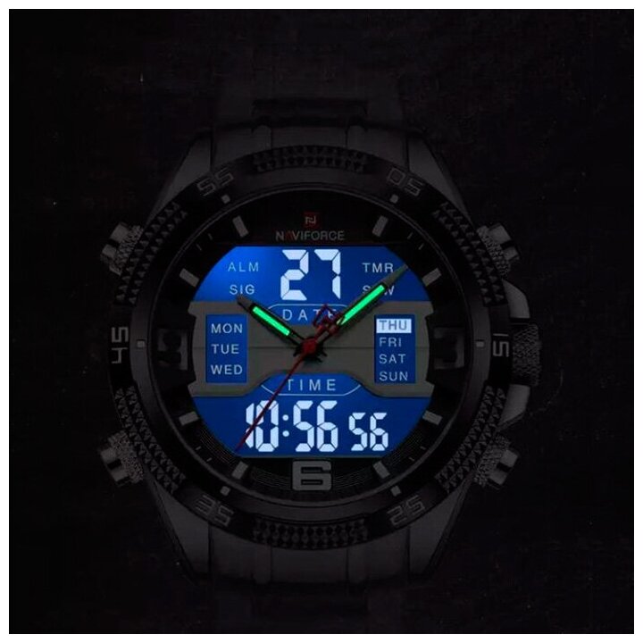 Часы наручные мужские электронные спортивные водонепроницаемые Naviforce/Навифорс NF9201 S/B круглые с секундомером и будильником интересное: