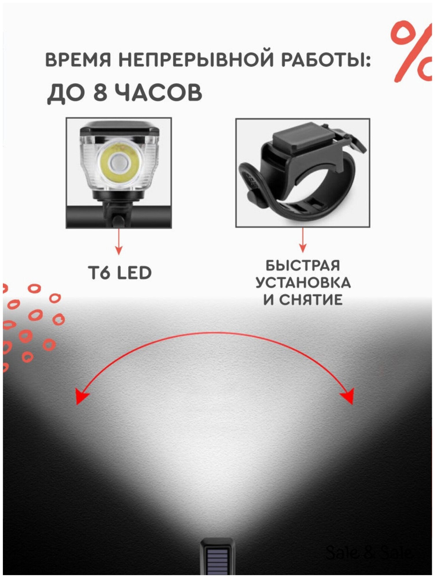 Фонарь велосипедный задний и передний 7 режимов универсальный, 2xАА, 5 диодов, видимость 800 м интересное: