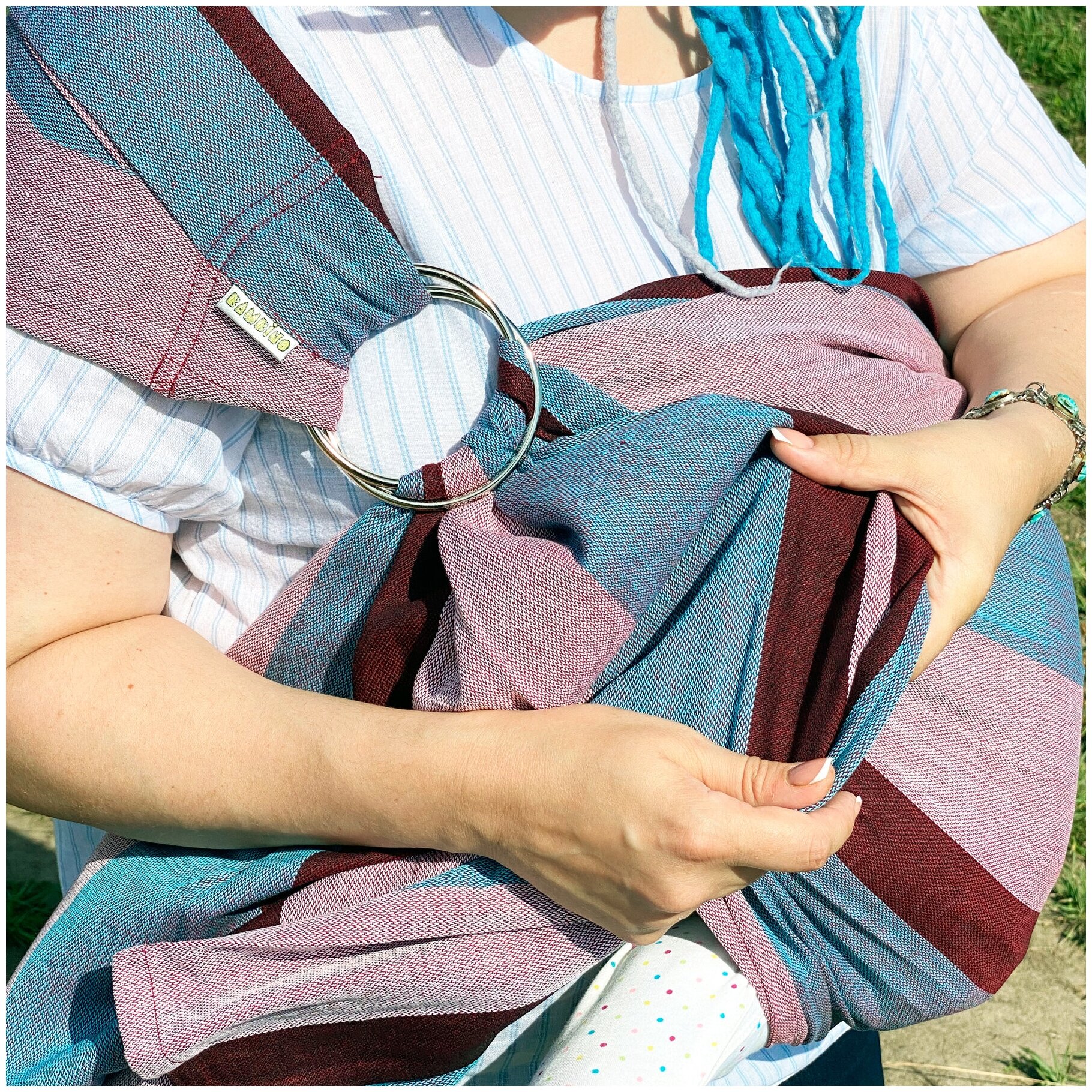 Тканый слинг с кольцами "Бамбино Бирюза"