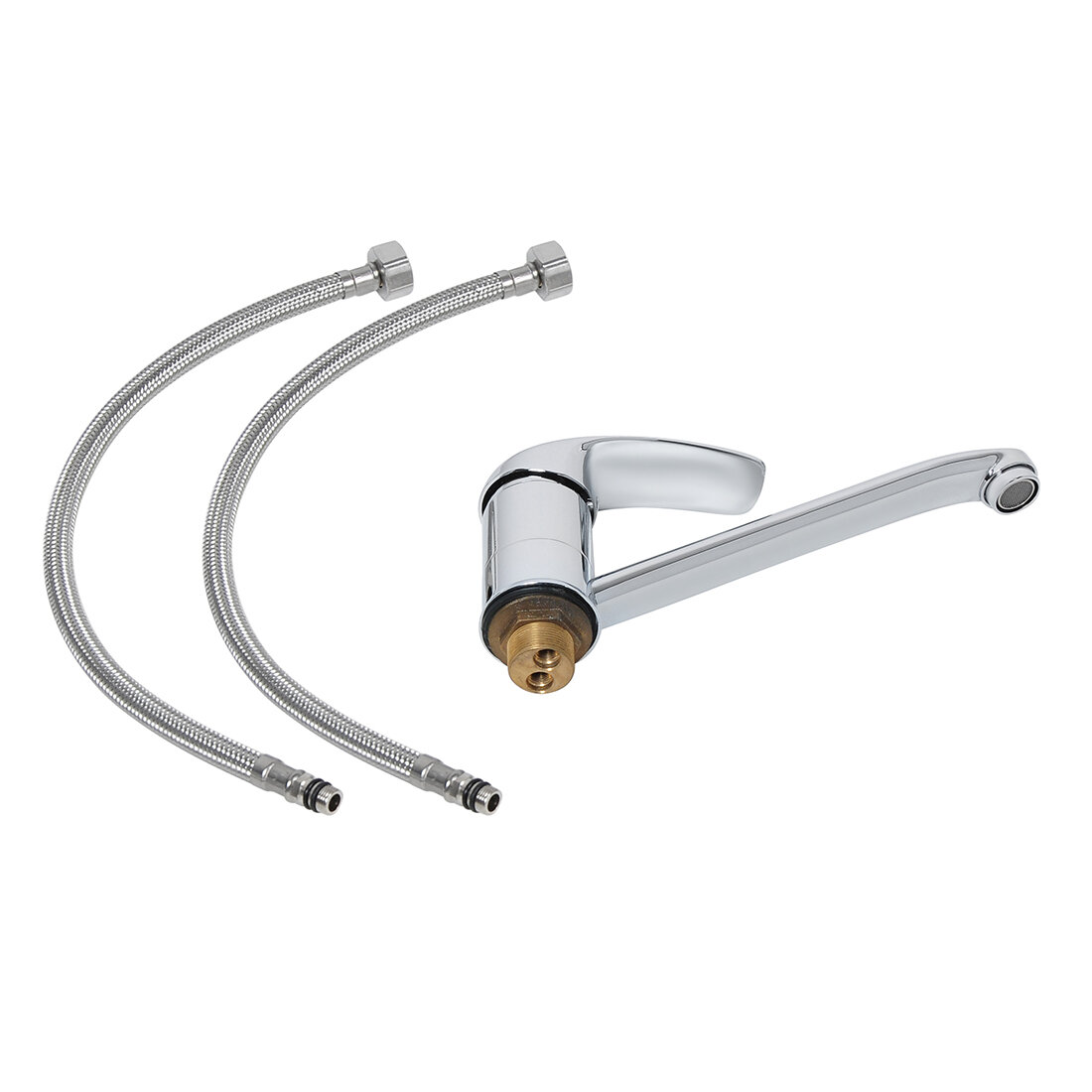 Смеситель/кран для кухни/умывальника (однорычажный с поворотным длинным (21,5 см) изливом, хромированный, латунный) SMART SM377-04C интересное: