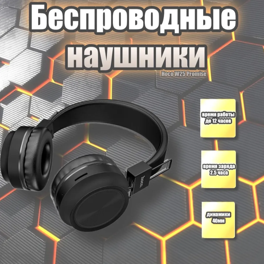 Наушники Hoco W25 Promise полноразмерные, беспроводные, Bluetooth 5.0, черный 92166