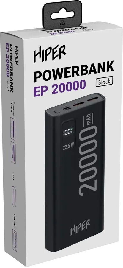 Купить Мобильный аккумулятор Hiper EP 20000 20000mAh 3A QC PD 2xUSB черный (EP 20000 BLACK)
