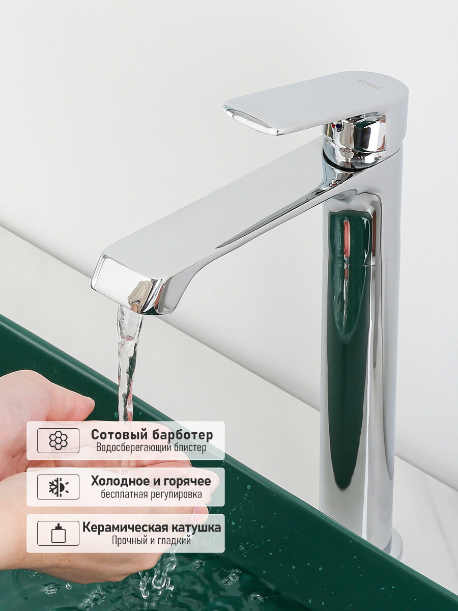 Смеситель для раковины с высоким изливом Frap F1071-2, однорычажный, хром