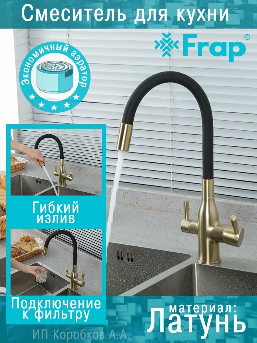 Купить Frap Смеситель для кухни с подключением фильтра питьевой воды бронза золотой черный F4396-3
