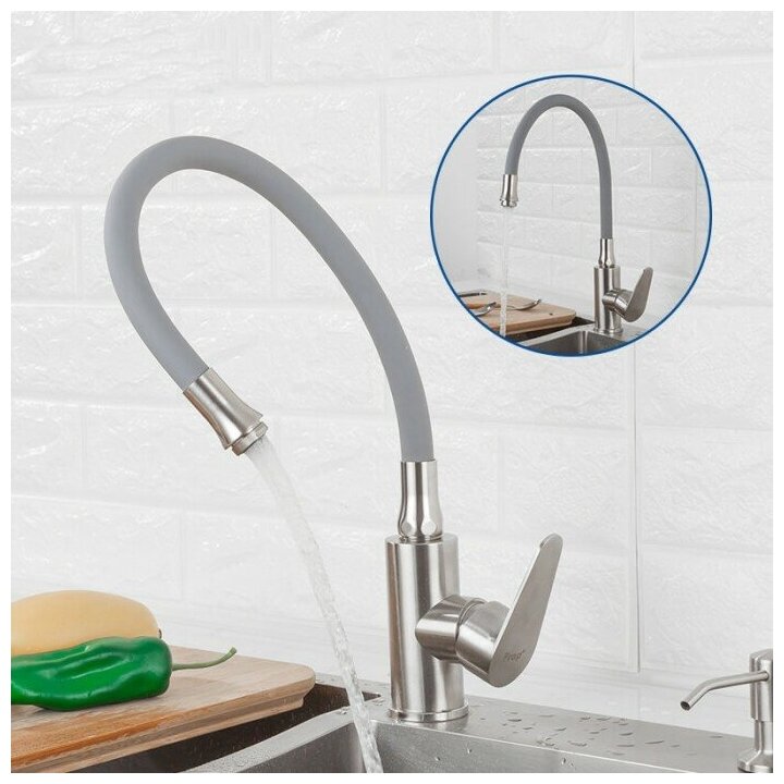 Смеситель для кухни Frap F4448, гибкий излив, однорычажный, сатин/серый интересное: