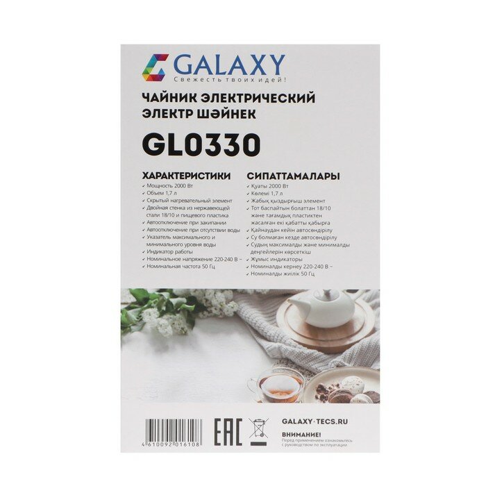 Чайник электрический Galaxy GL 0330, пластик, колба металл, 1.7 л, 2000 Вт, бежевый интересное: