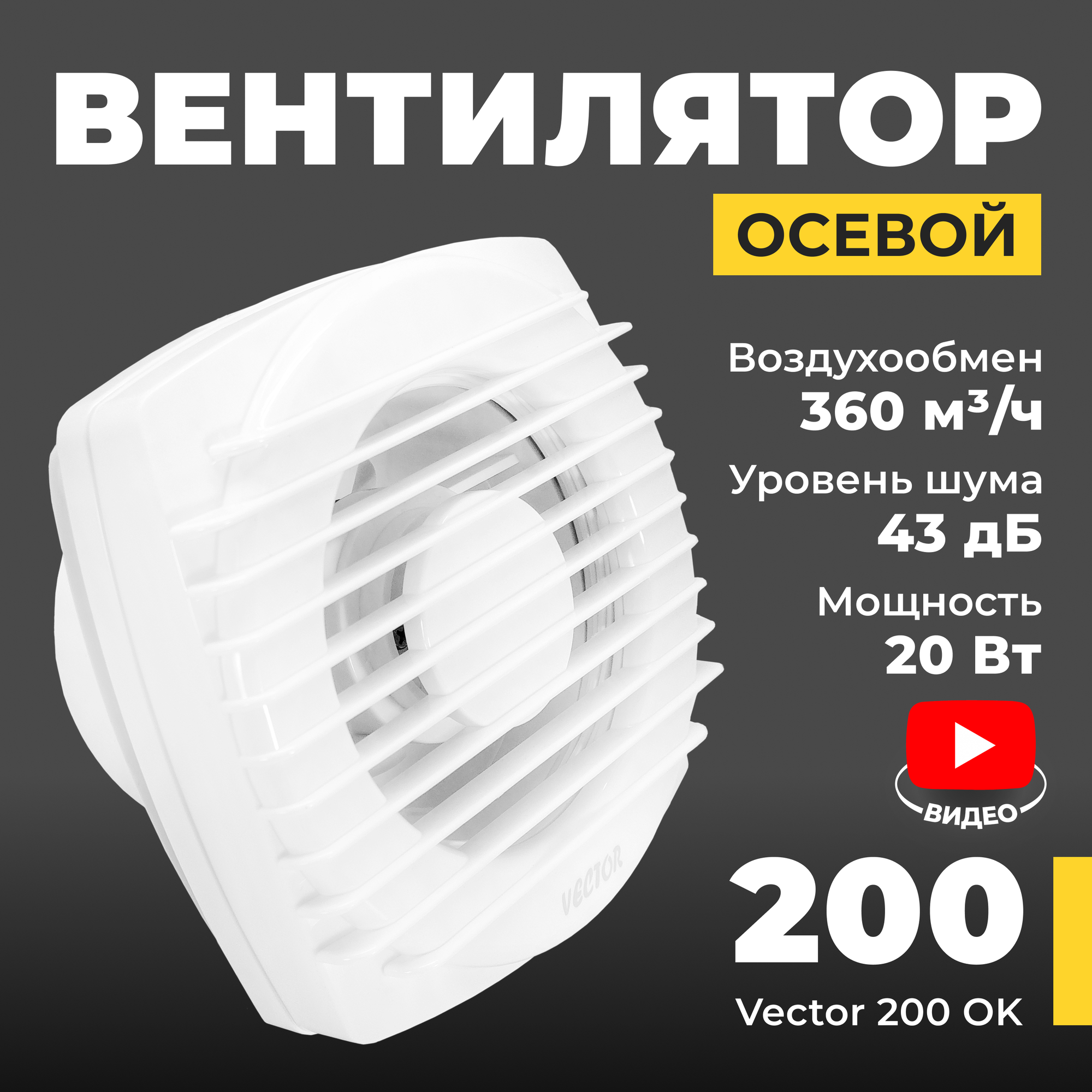Вентилятор вытяжной Vector 200 ОК, воздухообмен 360м3/ч 1PX2 20Вт, жалюзи, питание от розетки, белый интересное: