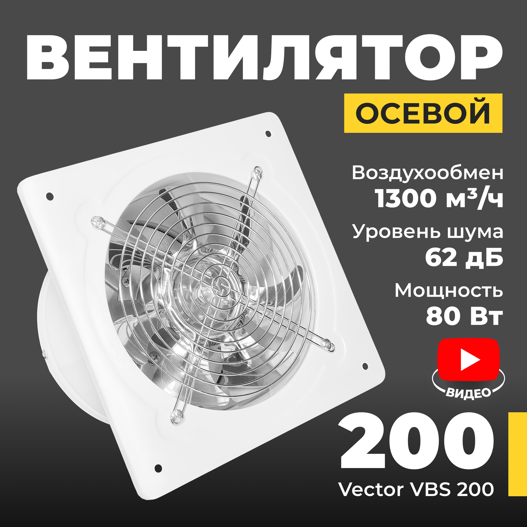 Вентилятор вытяжной промышленный Vector VBS200 с обратным клапаном, воздухообмен 1300 м3/ч, 80Вт, белый интересное: