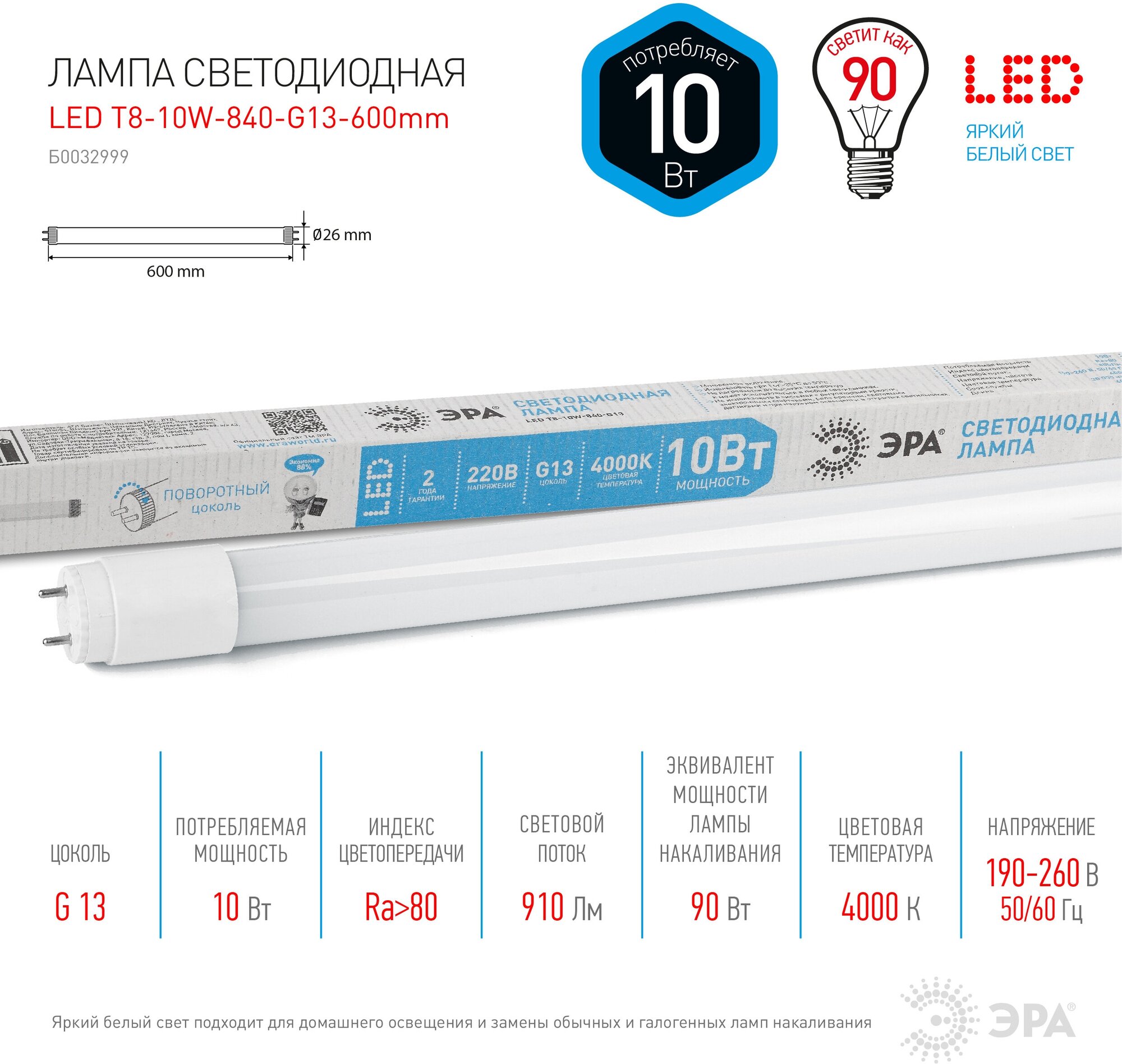 Ниже Вы можете прочитать отзывы на Лампа-трубка светодиодная ЭРА Эко, 10 Вт, 25000 ч, 600 мм, нейтральный белый, ECO LED T8-10W-840-G13-600mm, ознакомится с подробными характеристиками, посмотреть интересные обзоры и фотографии на Лампа-трубка светодиодная ЭРА Эко, 10 Вт, 25000 ч, 600 мм, нейтральный белый, ECO LED T8-10W-840-G13-600mm.