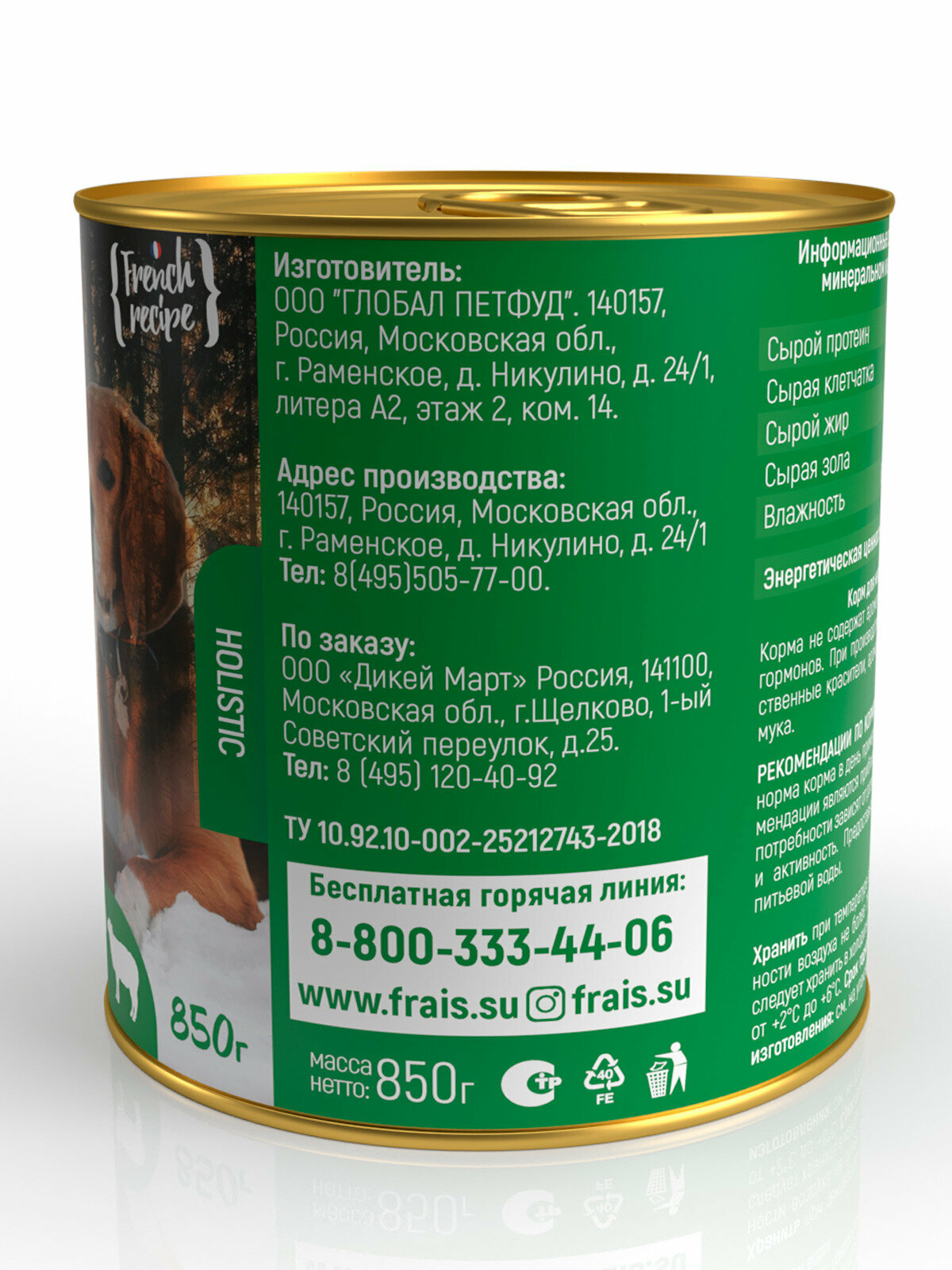 FRAIS HOLISTIC DOG консервы для собак мясные кусочки С ягненком В желе, 850 ГР, упаковка 6 ШТ интересное: