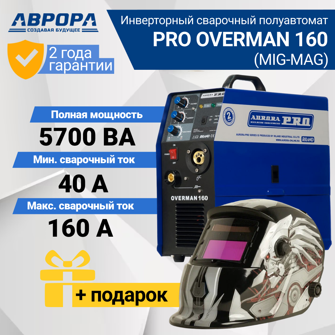 Инверторный сварочный полуавтомат AuroraPRO OVERMAN 160 (MOSFET) (7213710) + Подарок Маска сварщика Carbon
