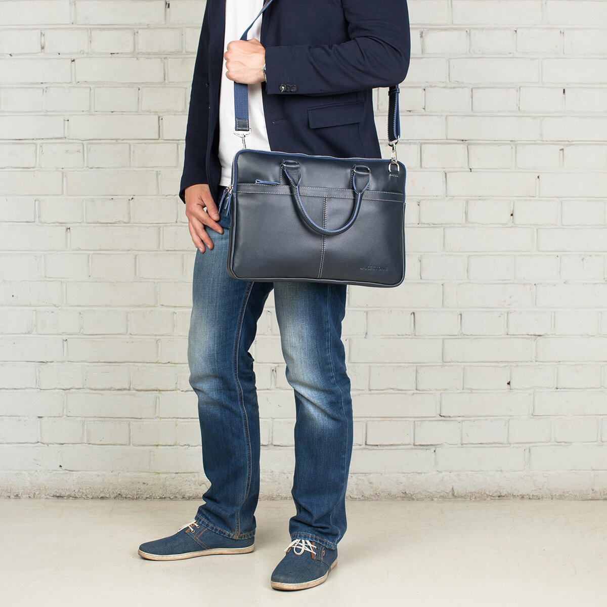 Деловая кожаная сумка Lakestone Cromwell Dark Blue интересное: