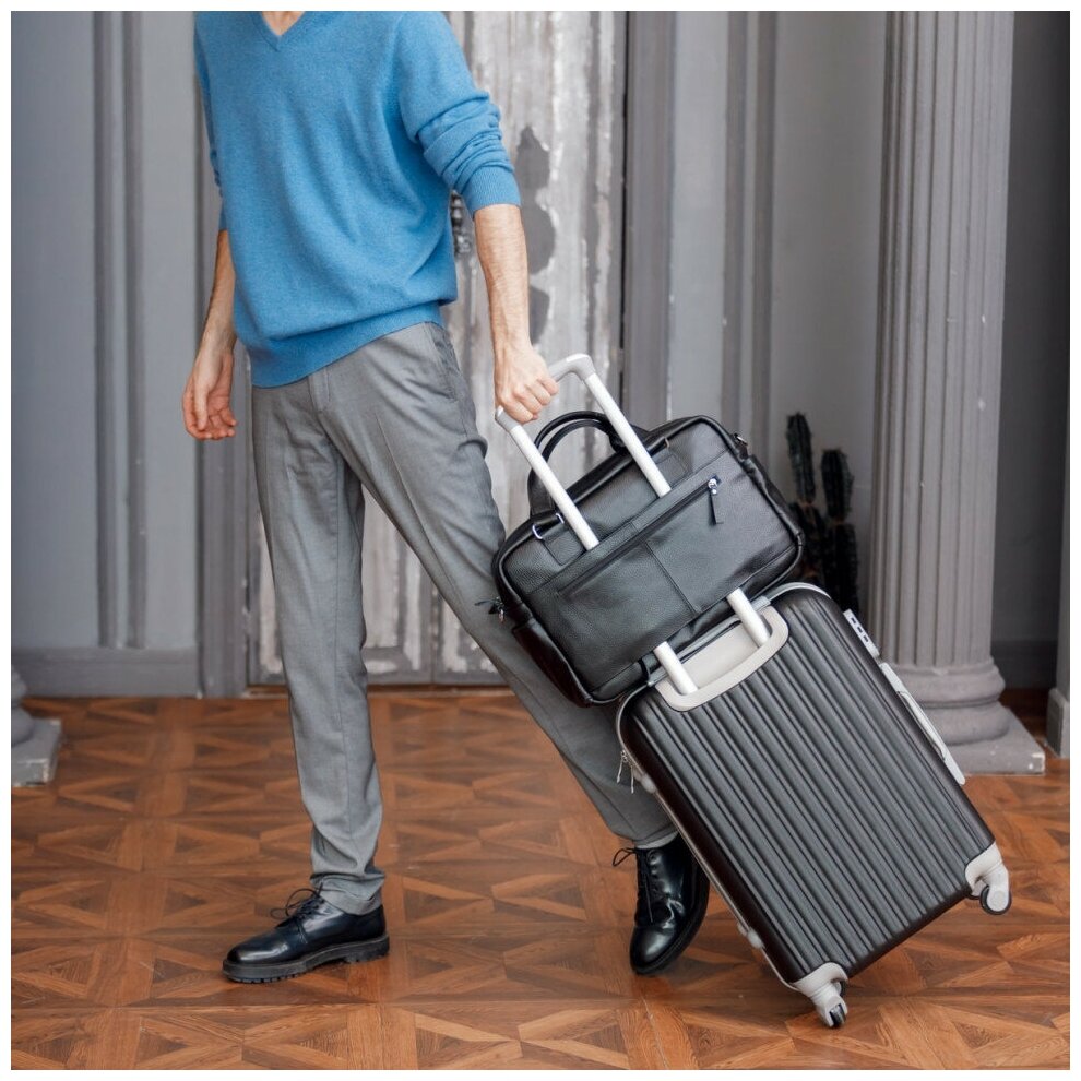 Мужская кожаная деловая сумка большого объема LAKESTONE Kingston Black 928598/BL интересное: