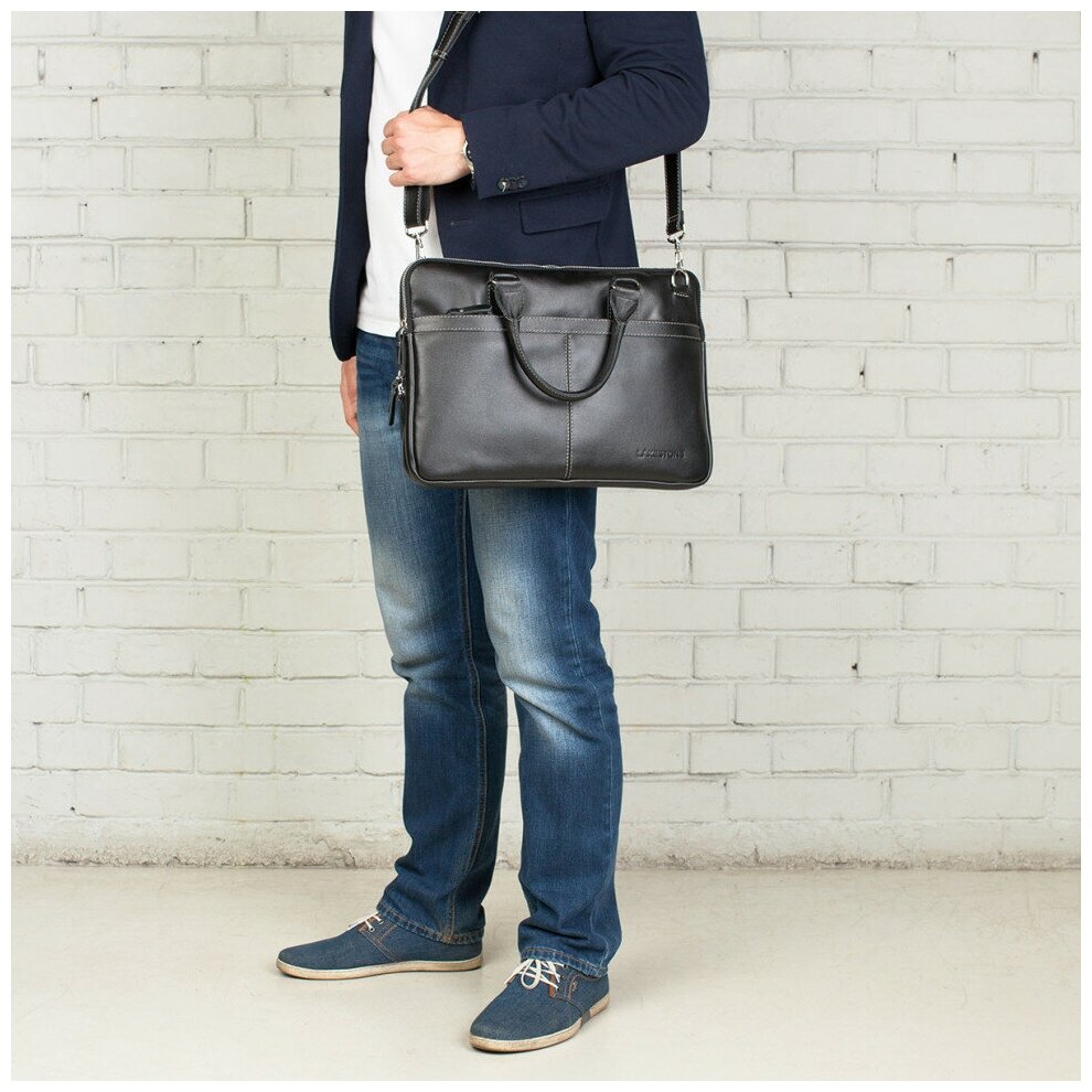 Мужская кожаная деловая сумка LAKESTONE Cromwell Black 923122/BL интересное: