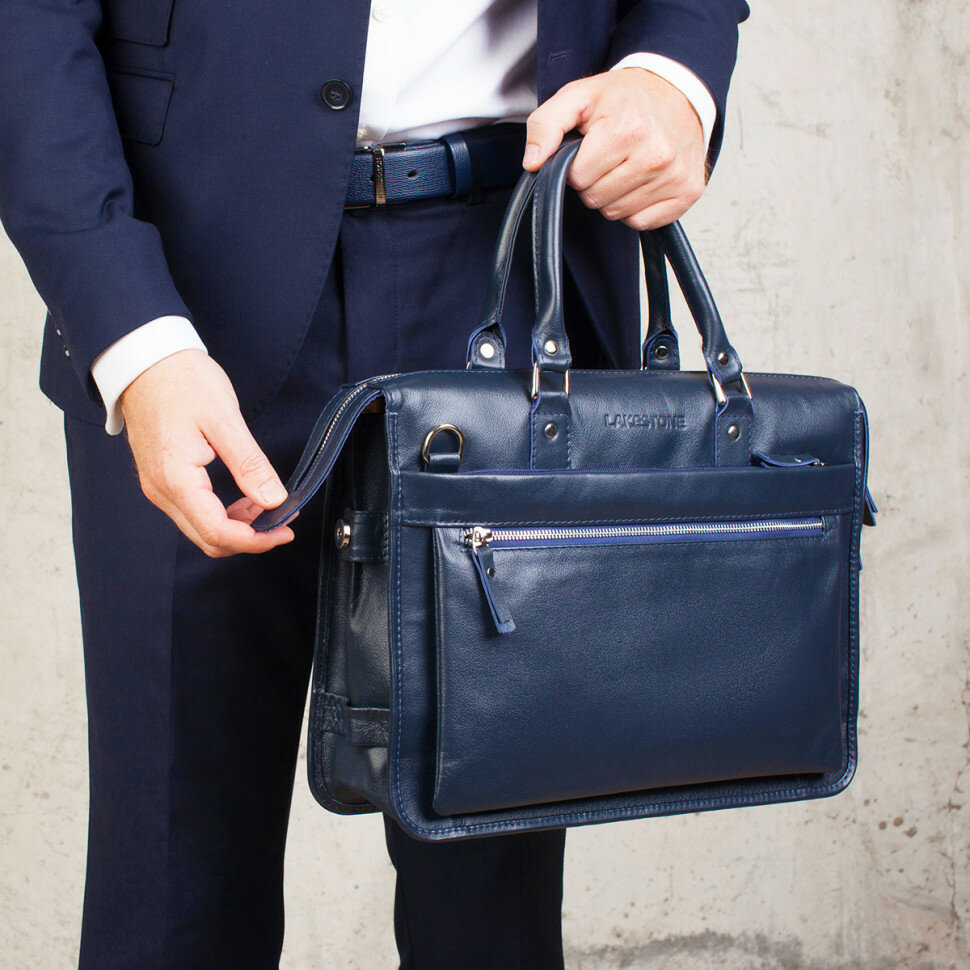 Мужская кожаная деловая сумка LAKESTONE Halston Dark Blue 923124/DB интересное:
