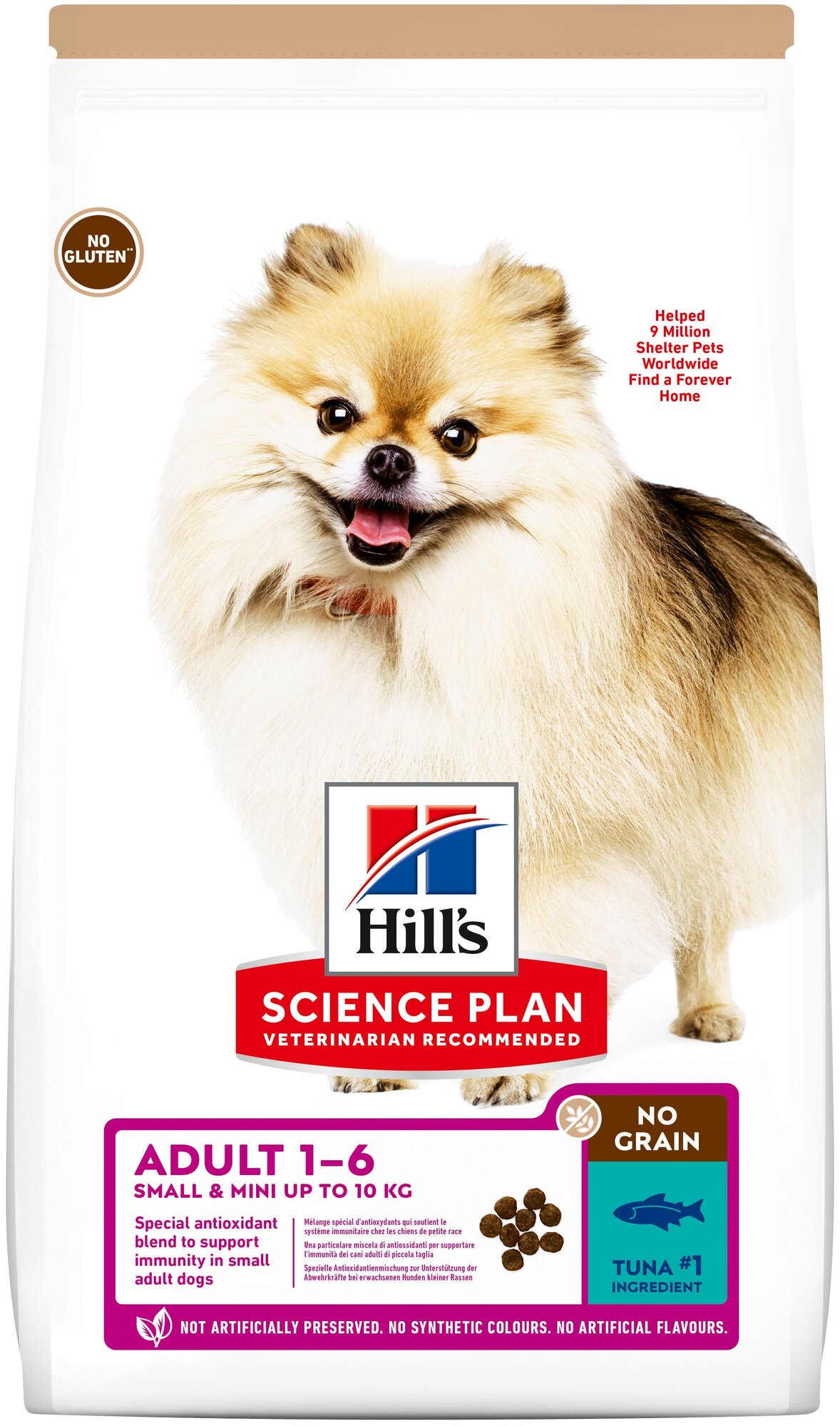 Беззлаковый сухой корм Hill's Science Plan No Grain для взрослых собак мелких пород, с тунцом, 1.5 кг