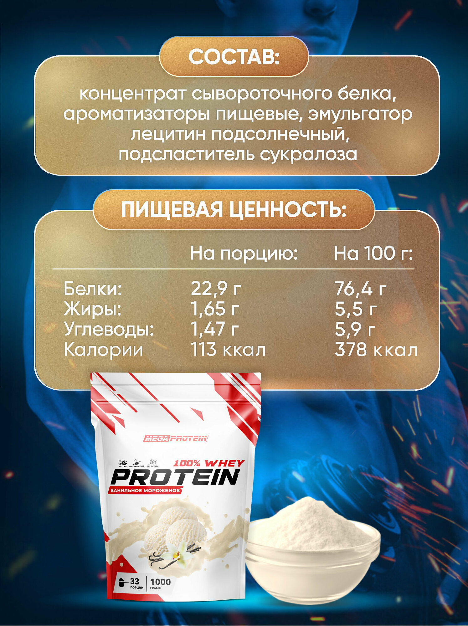 Протеин сывороточный Megaprotein WHEY PROTEIN , Мороженое, 1000 гр