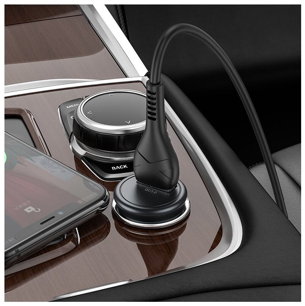 Автомобильное зарядное устройство (АЗУ) Hoco Z43 QC 3.0 (USB) + кабель Type-C, 3 А, черный