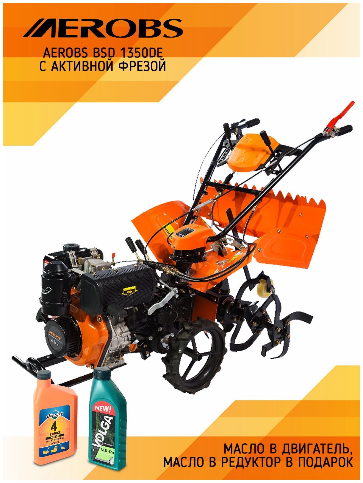 Мотоблок культиватор дизельный дачный садовый с колесами с 4-х тактным двигателем AEROBS BSD 1350DE (BSX 620) 6 л.с. c активной фрезой с подарком интересное: