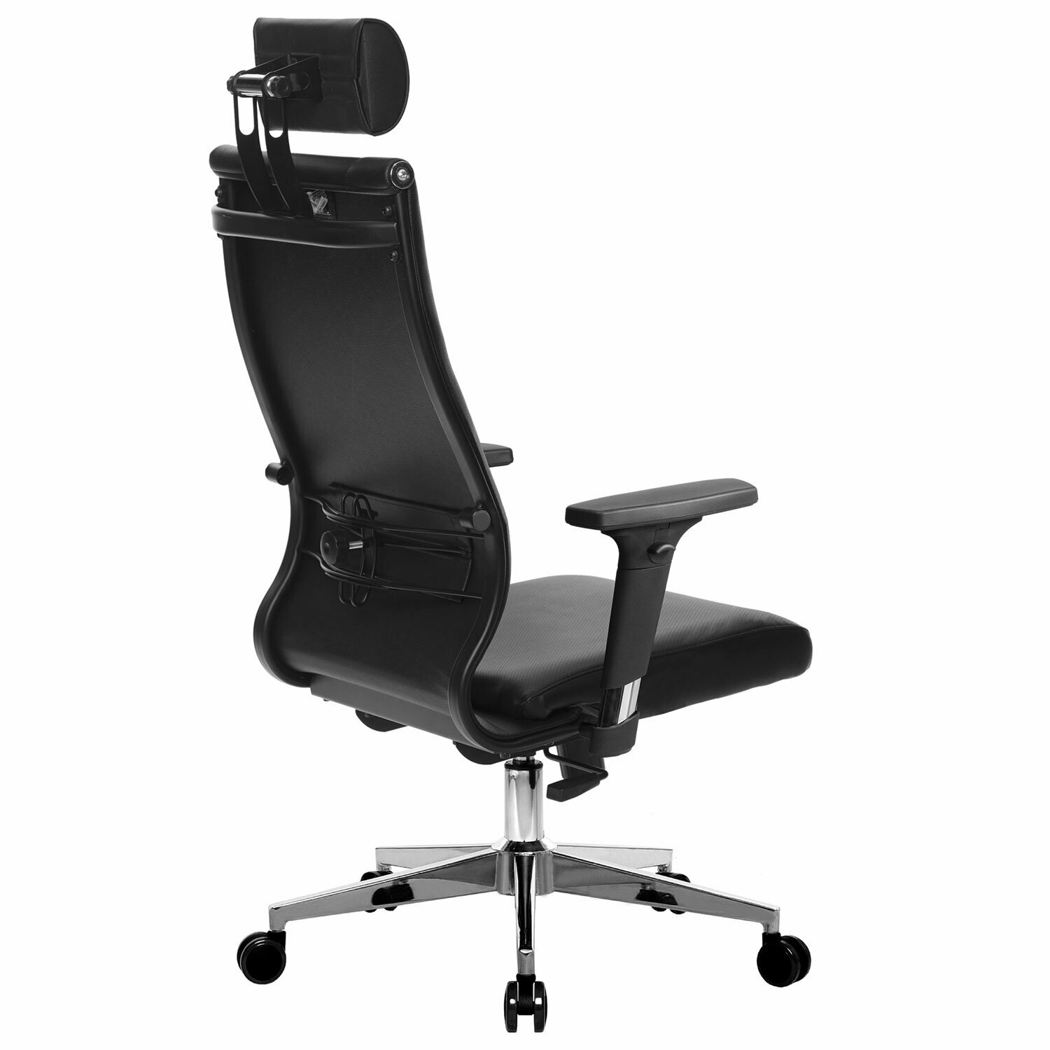 Купить Кресло офисное метта «К-32-2D» хром, рецик. кожа, подголовник, сиденье и спинка мягкие, черное