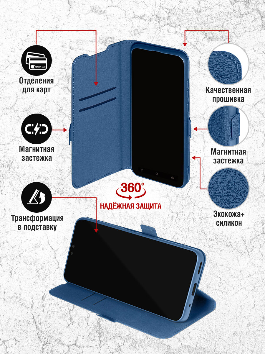 Чехол с флипом для Tecno POVA 4 (4G) DF tFlip-21 (blue) интересное: