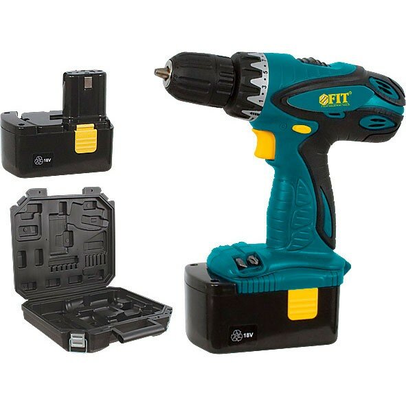 Купить Дрель-Шуруповерт акк. 18,0 В; 0-550 об/мин; 16,0 Нм; 2 (Ni-Cd) 1,3 Ач; 3-5 ч.; рез. накл.; кейс Fit