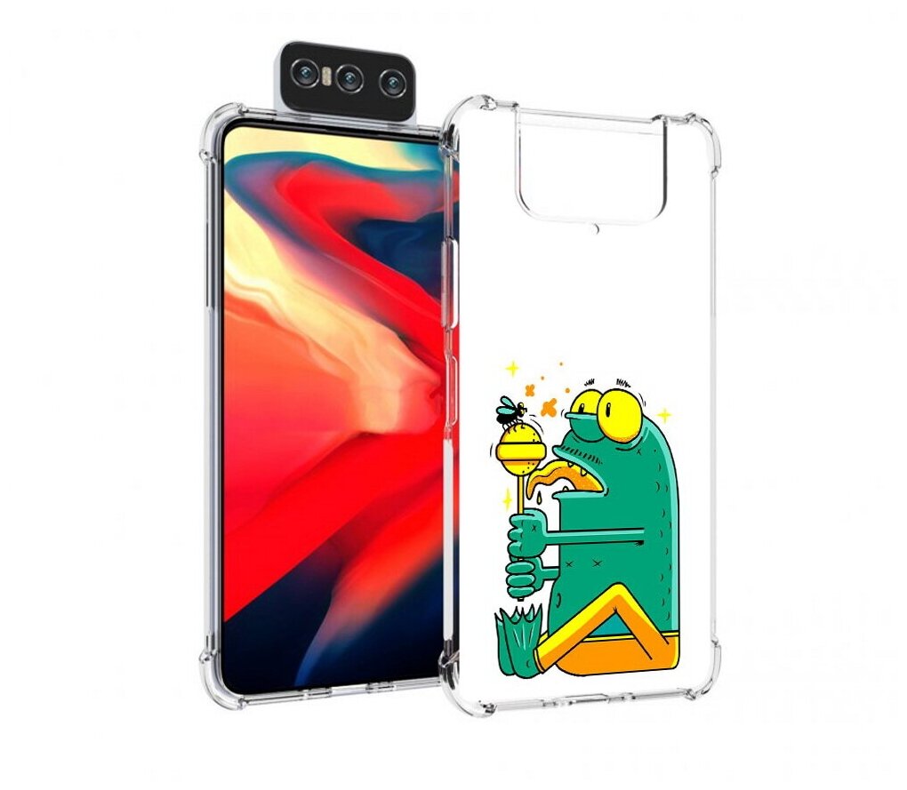 Купить Чехол задняя-панель-накладка-бампер MyPads Зеленая лягушка с чупа чупсом для Asus Zenfone 8 Flip ZS672KS противоударный