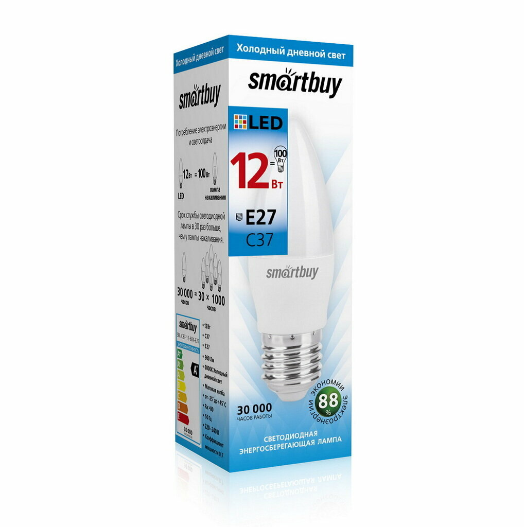 Лампочка SMARTBUY SBL-C37-12-60K-E27 12 Вт, Е27, белый