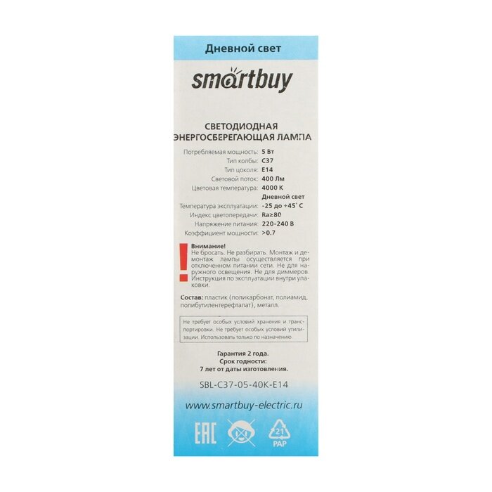 Ниже Вы можете прочитать отзывы на Smartbuy Лампа cветодиодная Smartbuy, Е14, C37, 5 Вт, 4000 К, дневной белый свет, ознакомится с подробными характеристиками, посмотреть интересные обзоры и фотографии на Smartbuy Лампа cветодиодная Smartbuy, Е14, C37, 5 Вт, 4000 К, дневной белый свет.