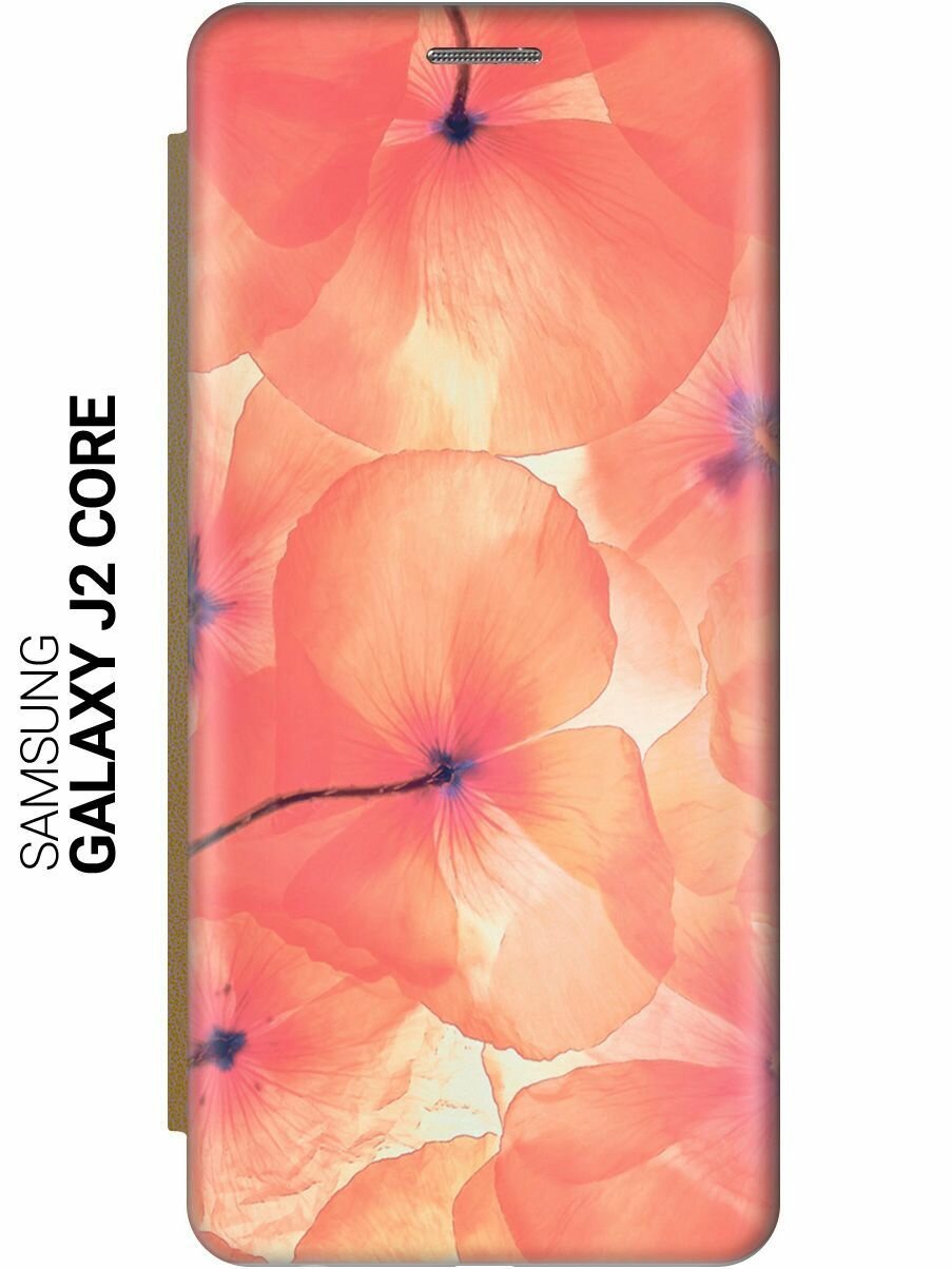 Чехол-книжка на Samsung Galaxy J2 Core / Самсунг Джей 2 Кор c принтом "Цветы серени" золотистый