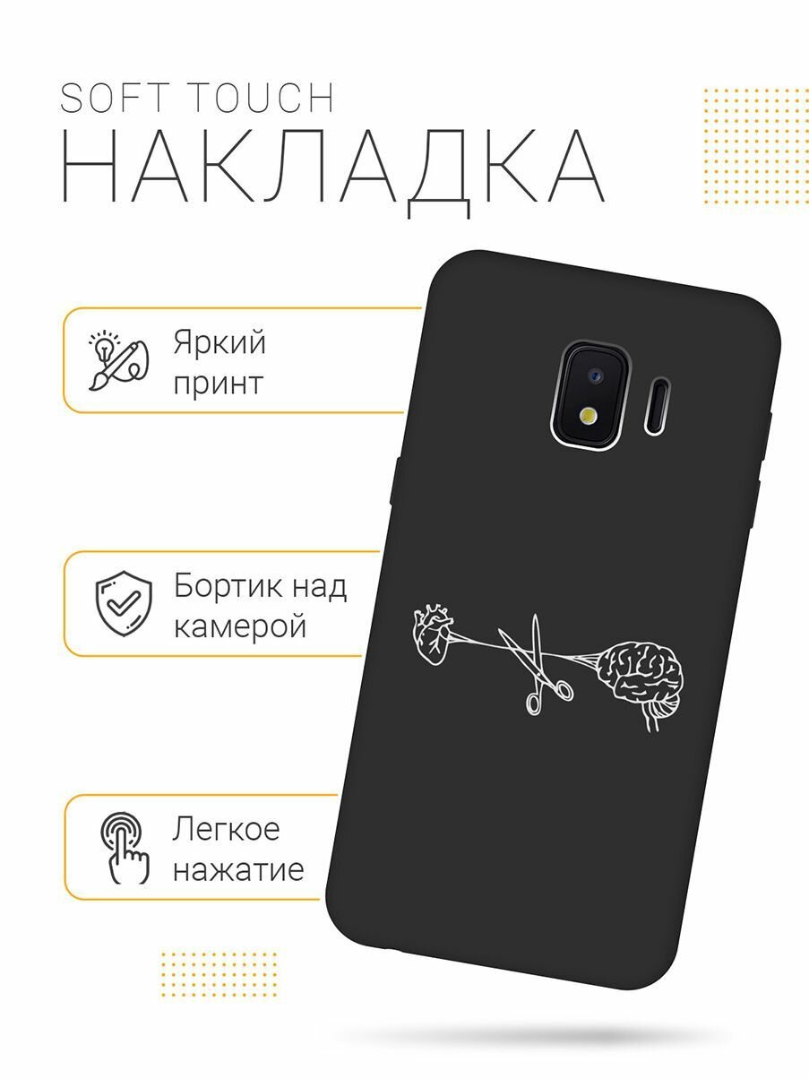 Матовый Soft Touch силиконовый чехол на Samsung Galaxy J2 Core, Самсунг Джей 2 Кор с 3D принтом "Brain Plus Heart W" черный