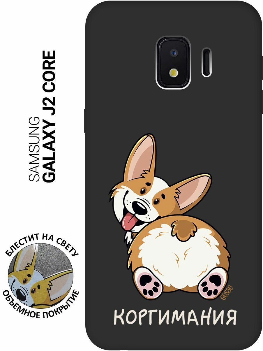 Матовый Soft Touch силиконовый чехол на Samsung Galaxy J2 Core, Самсунг Джей 2 Кор с 3D принтом "CorgiMania" черный