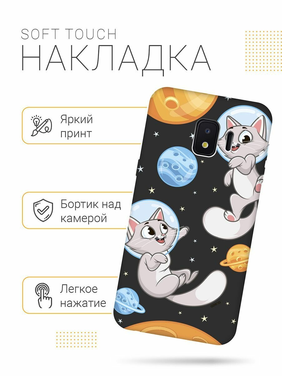 Матовый Soft Touch силиконовый чехол на Samsung Galaxy J2 Core, Самсунг Джей 2 Кор с 3D принтом "CosmoCats" черный