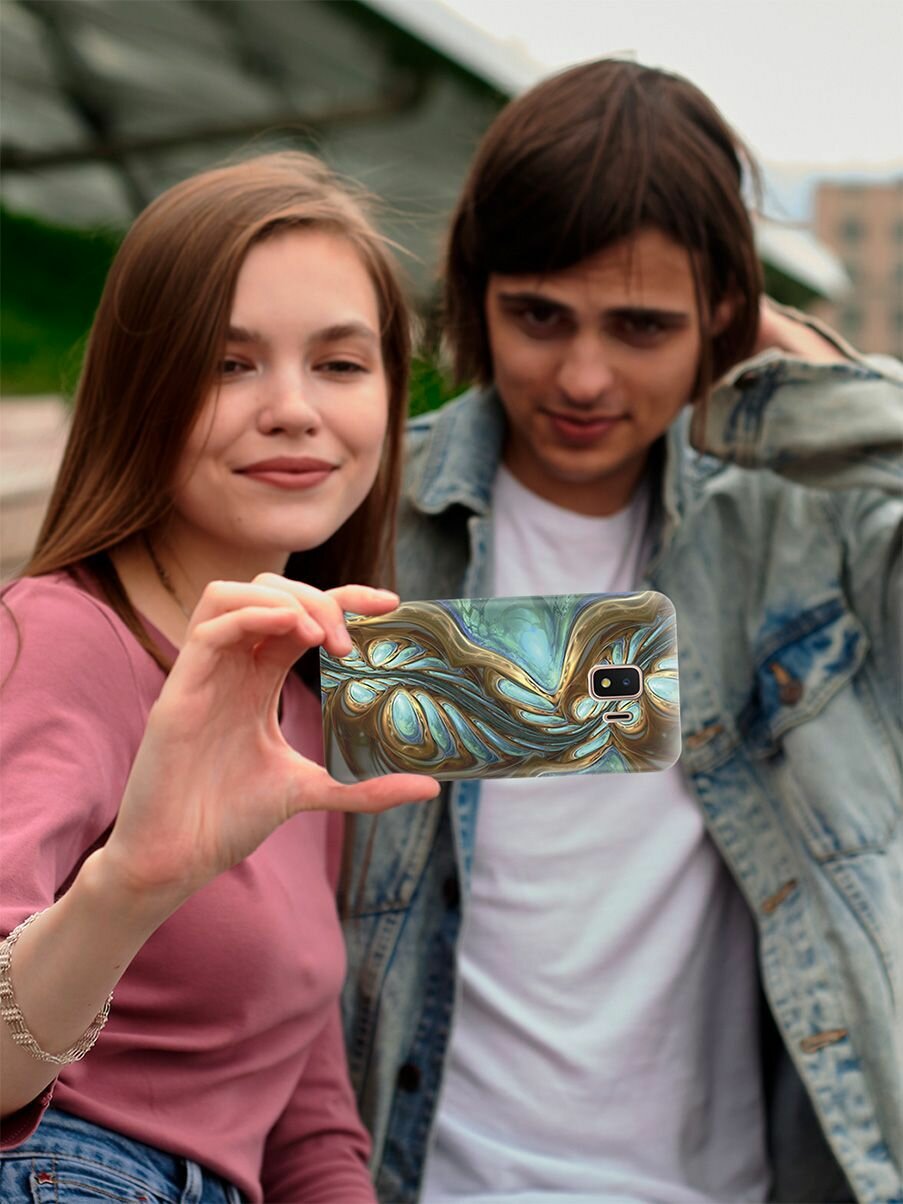 Силиконовый чехол Голубо-золотая абстракция на Samsung Galaxy J2 Core / Самсунг Джей 2 Кор интересное: