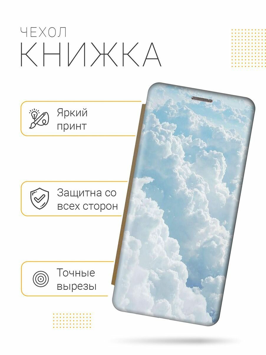 СохранитьЧехол-книжка на Samsung Galaxy J2 Core / Самсунг Джей 2 Кор c принтом "Кучевые облака" золотистый интересное: