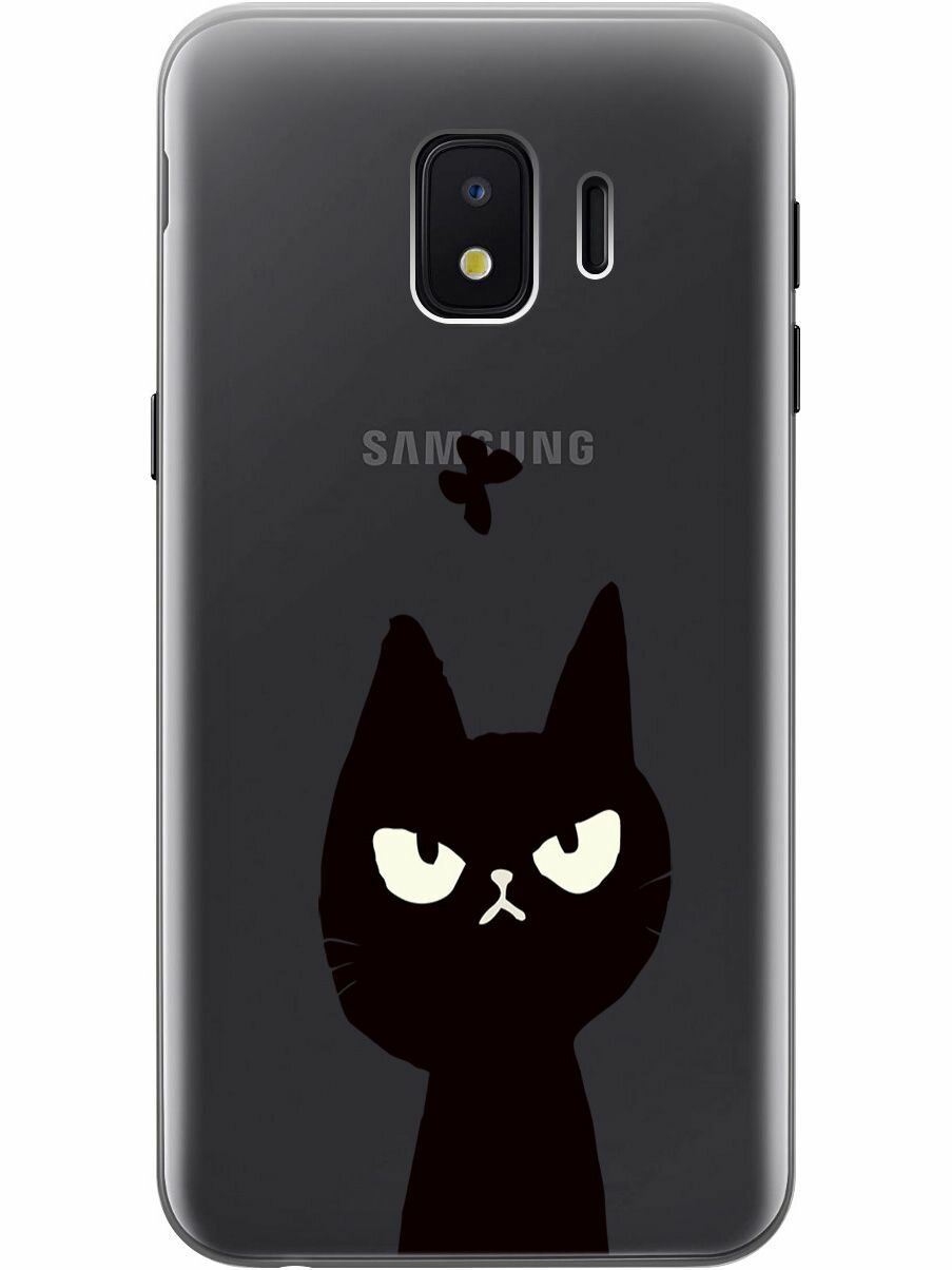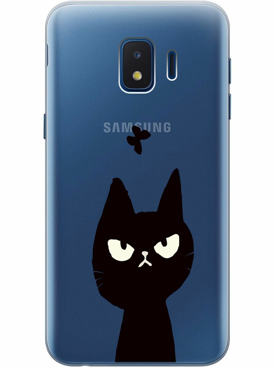 Силиконовый чехол на Samsung Galaxy J2 Core, Самсунг Джей 2 Кор с 3D принтом "Disgruntled Cat" прозрачный