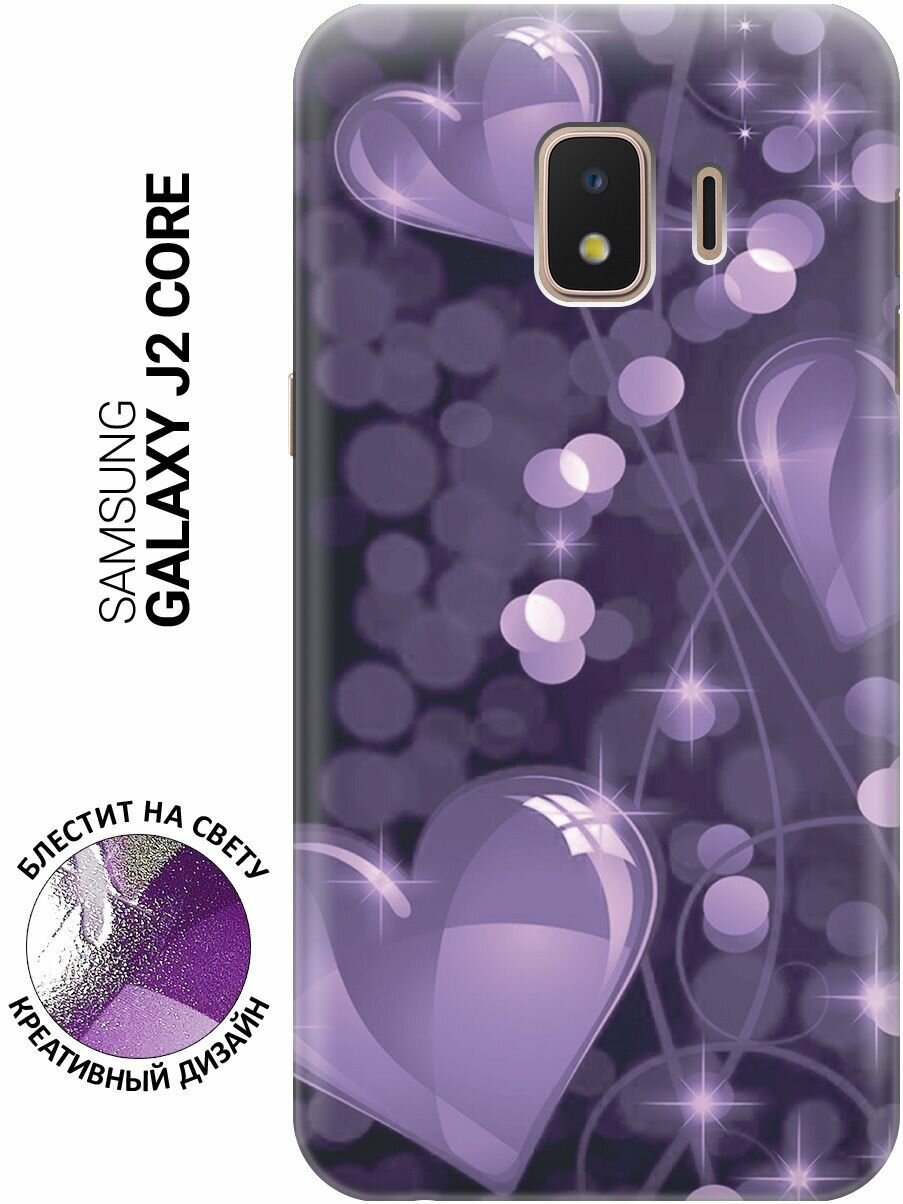 Силиконовый чехол на Samsung Galaxy J2 Core, Самсунг Джей 2 Кор с эффектом блеска "Любовь в фиолетовом цвете"
