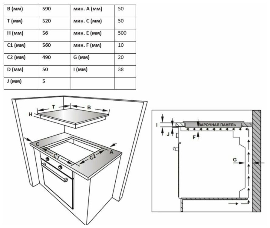 | Безопасность | индикатор остаточного тепла / кнопка блокировки панели |