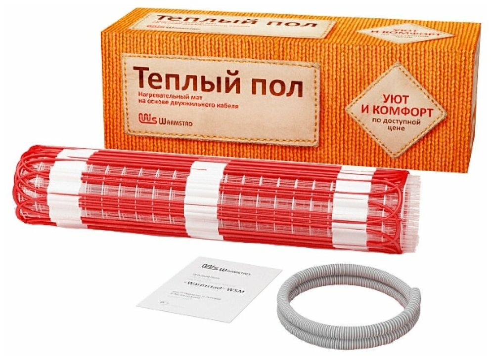 Тёплый пол под плитку с терморегулятором, мат нагревательный Warmstad WSM 100 Вт/0,65 кв.м интересное: