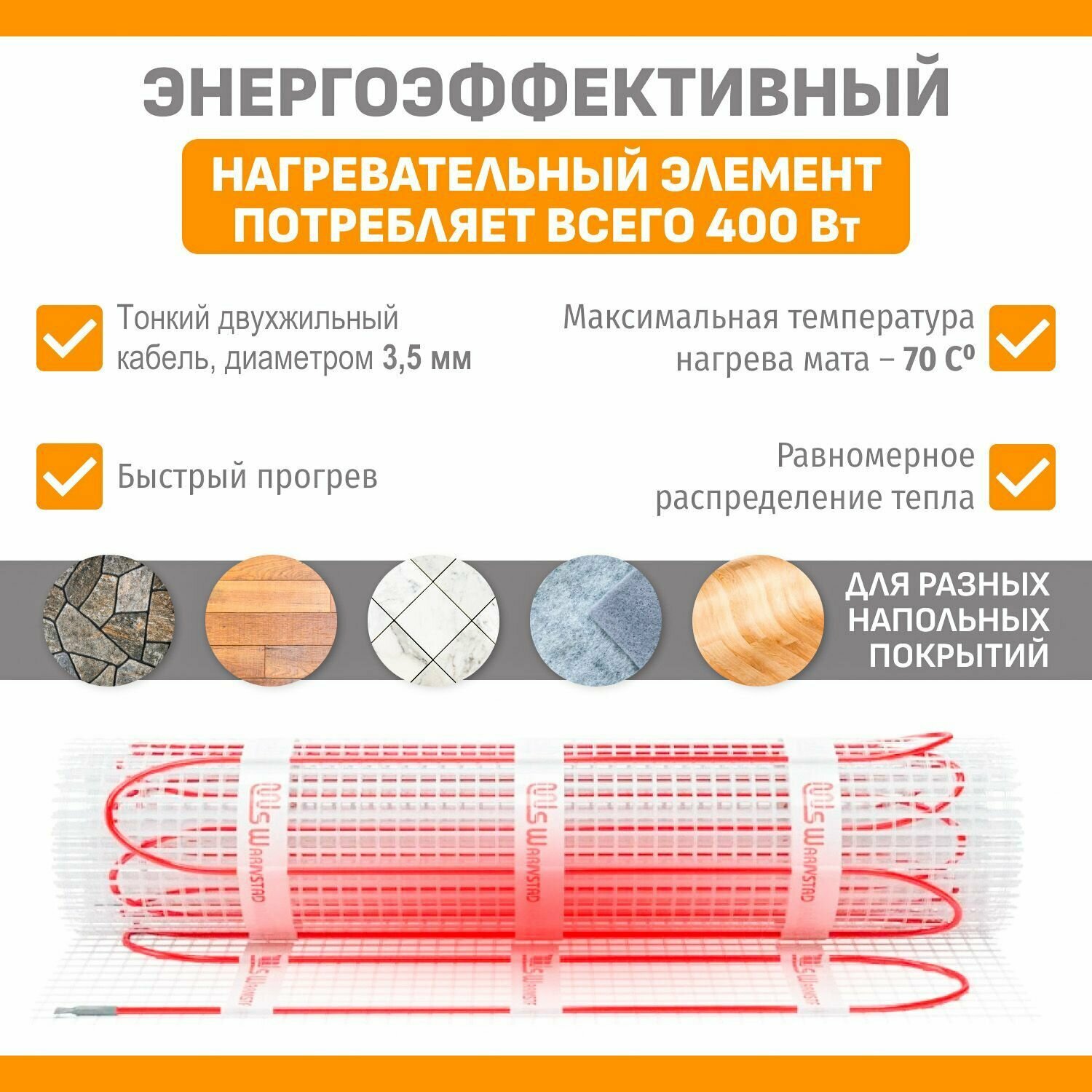 Нагревательный мат Warmstad WSM 400 Вт/2,70 кв.м с терморегулятором