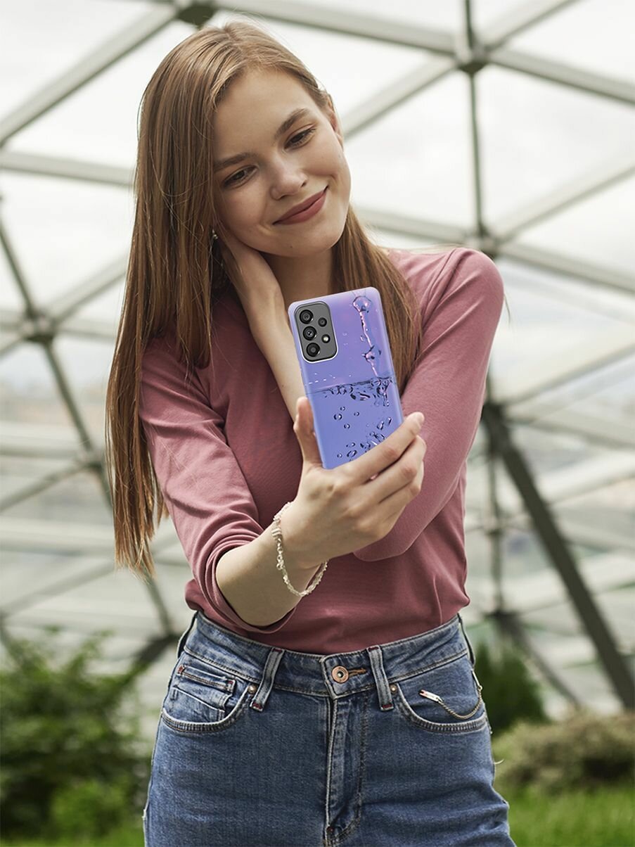 СохранитьСиликоновый чехол на Samsung Galaxy A73 5G / Самсунг А73 5Г с принтом "Капли на сиреневом" интересное: