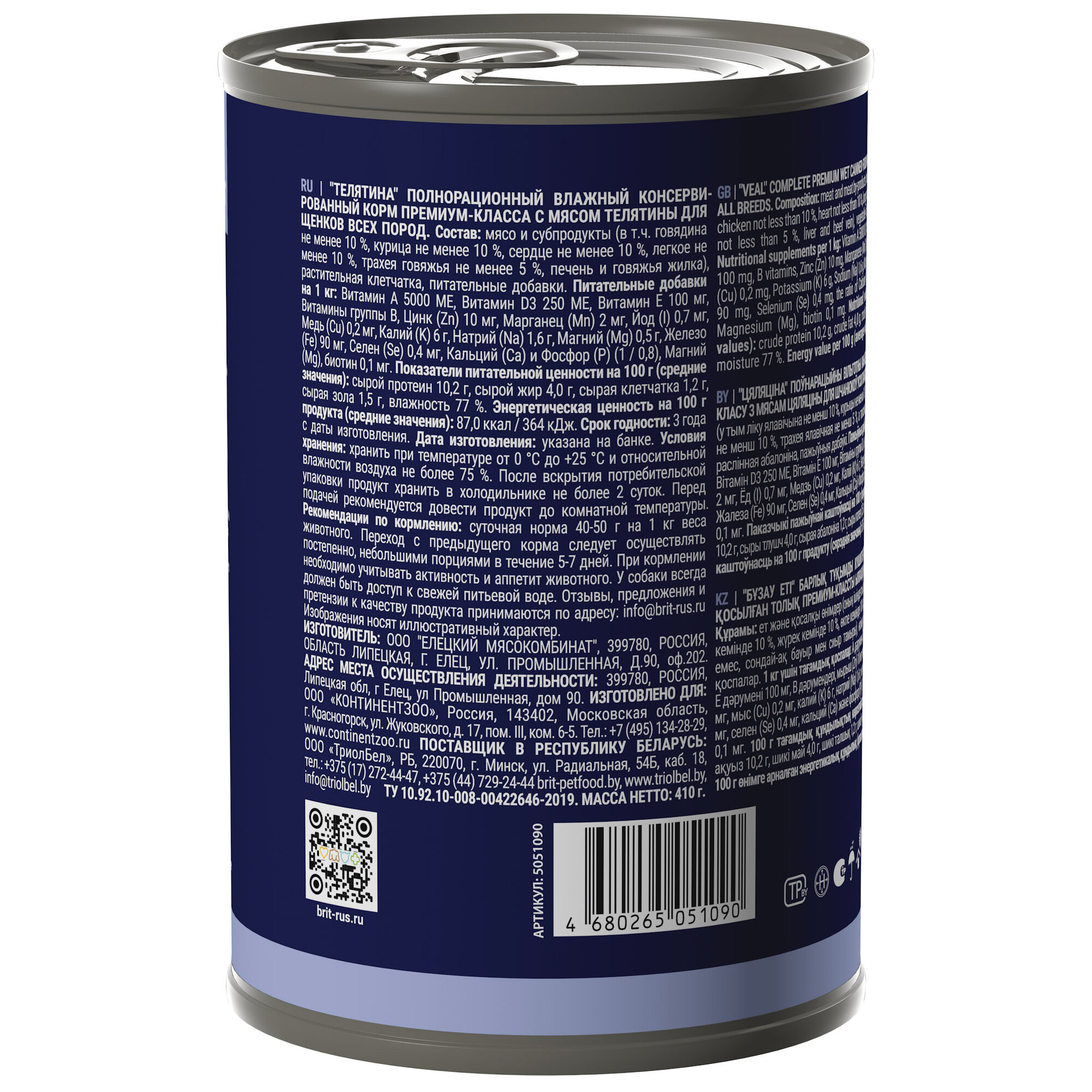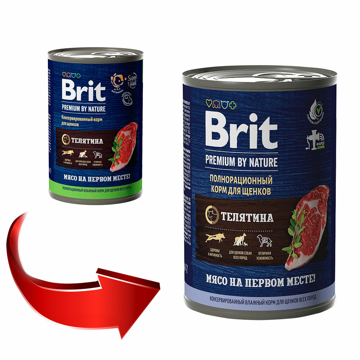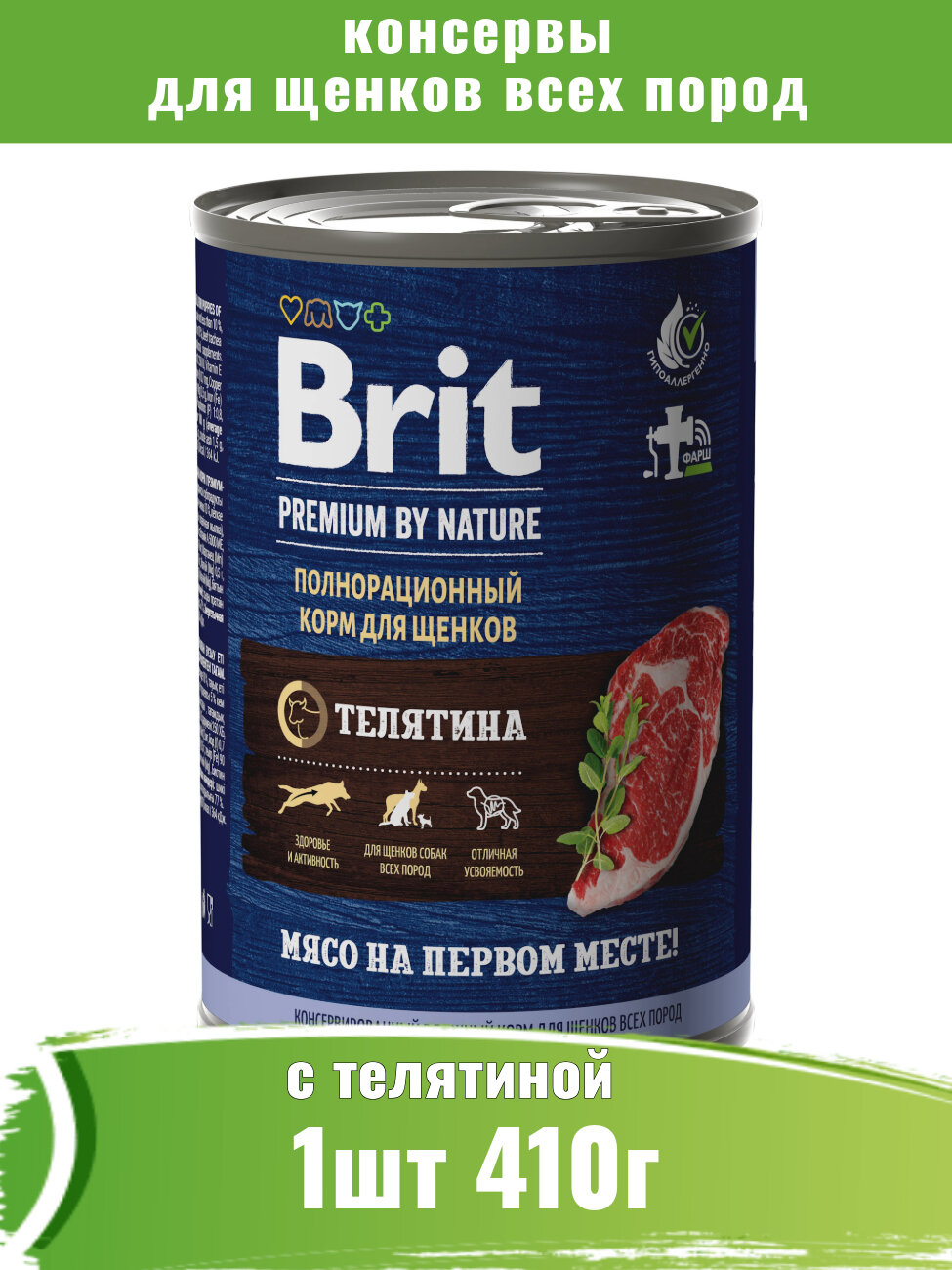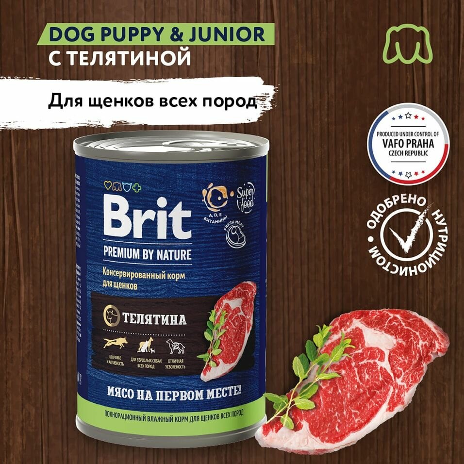 Brit Premium by Nature Корм консервированный с телятиной для щенков всех пород, 410гр, 6 штук