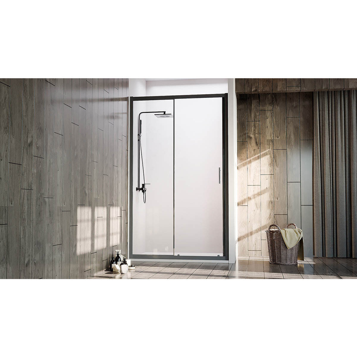 Душевая дверь Veconi VN72B-140-01-C4 1400х1950 мм профиль черный, стекло прозрачное