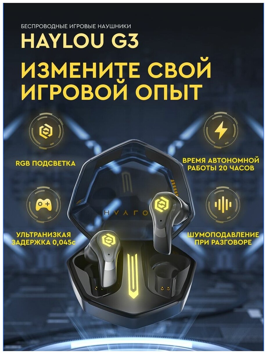 Беспроводные игровые TWS наушники Haylou G3 черные с подсветкой RGB