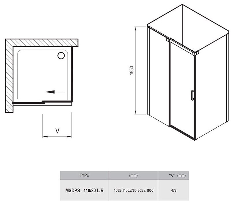 Душевой уголок Ravak Matrix MSDPS 0WLD4100Z1 L 110х80 см, transparent, белый