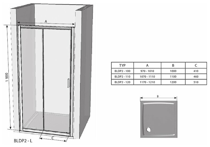 Ravak BLDP2-100 блестящий+транспарент, Blix душевая дверь раздвижная, двухэлементная