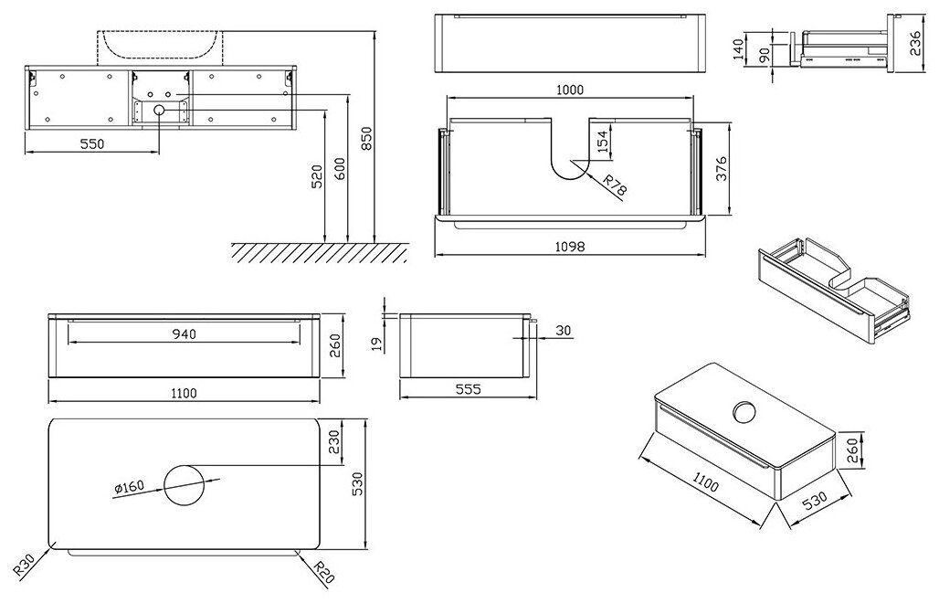 Тумба под умывальник Ravak SUD 260.01 1100 орех интересное: