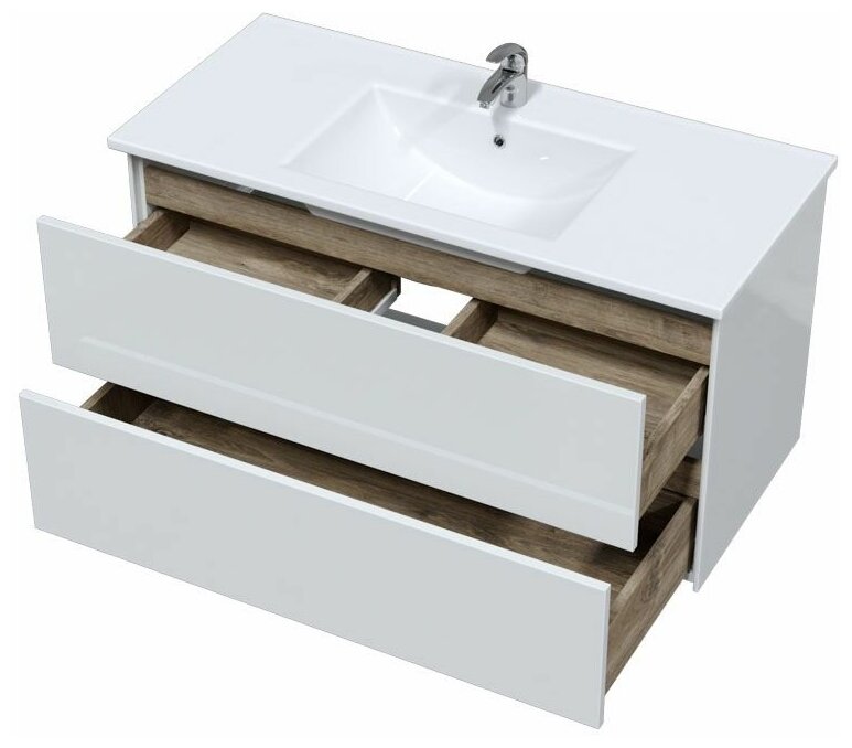 Купить Подвесная тумба под раковину Ultra 100 (2 ящ.), белая, глянцевая (без раковины)