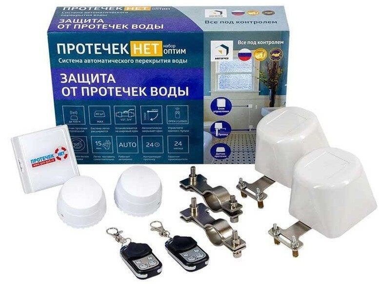 | Подробная комплектация | Блок управления 1 (шт.) Электропривод на шаровой кран 2 (шт.) Беспроводной датчик протечки воды 2 (шт.) Пульт управления 2 (шт.) Сетевой адаптер 12В 1 (шт.) Комплект для крепежа 1 (шт.) Руководство настройки и эксплуатации 1 (шт.) |